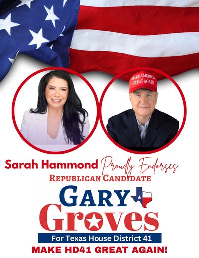 With faith as his foundation and love for Texas in his heart, Gary Groves humbly asks for your vote to serve our community, defend our freedoms, and uphold the conservative values that make Texas strong. Sign up to stay informed or volunteer!